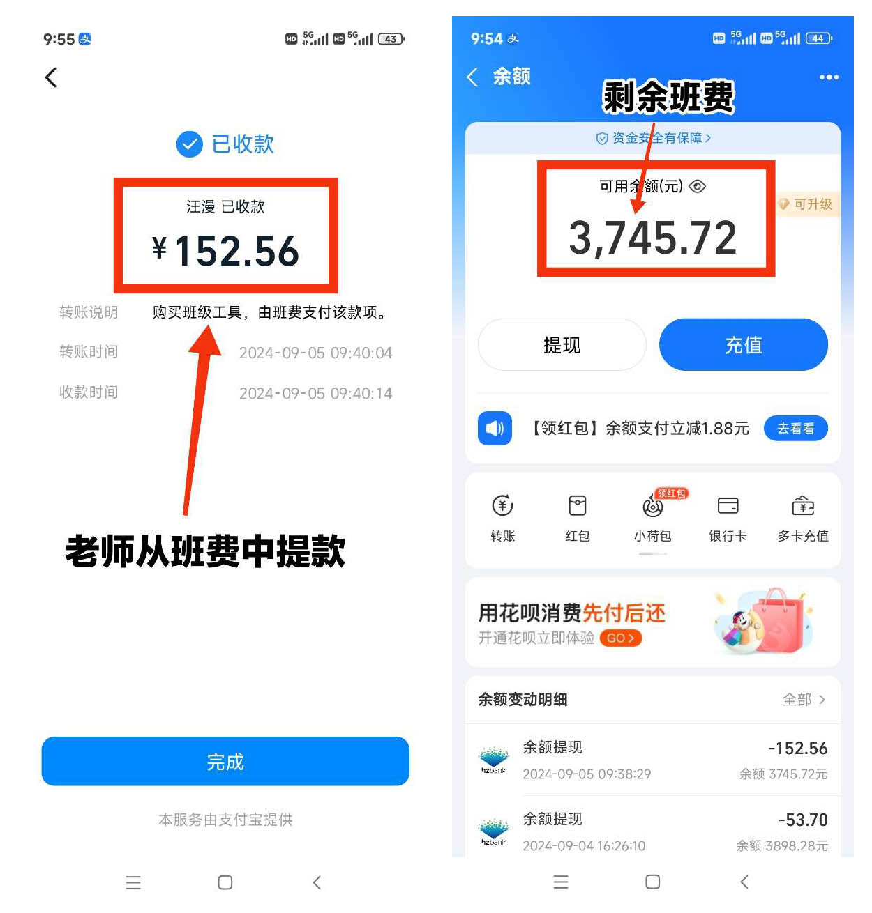 -> 班费支出 - 152.56 元